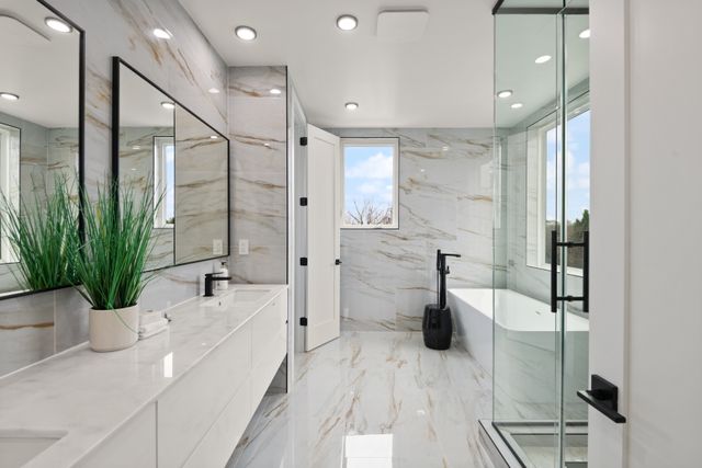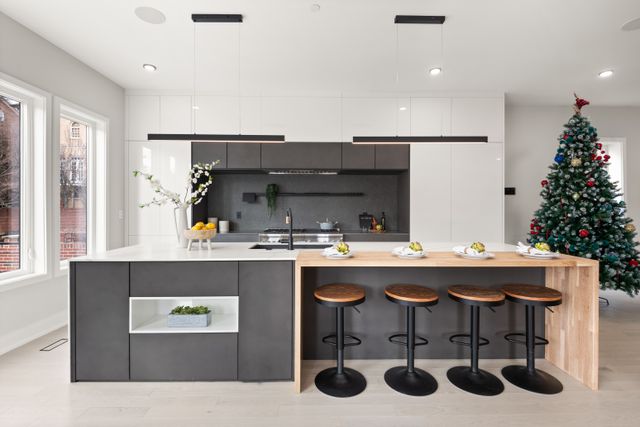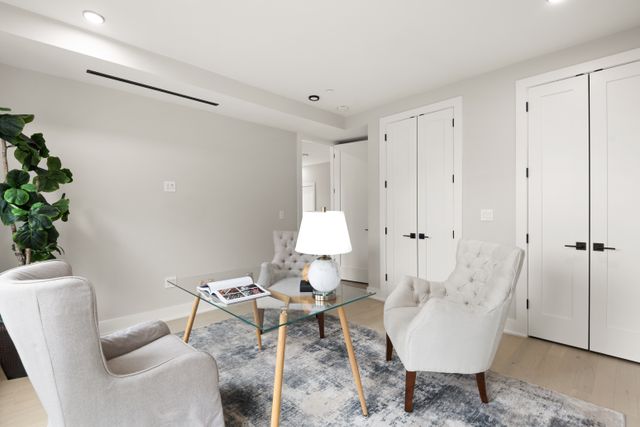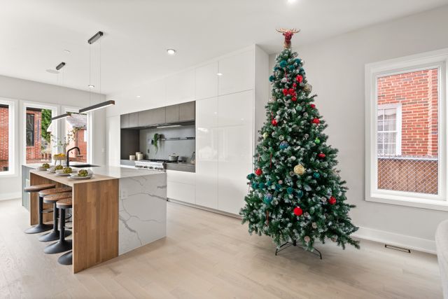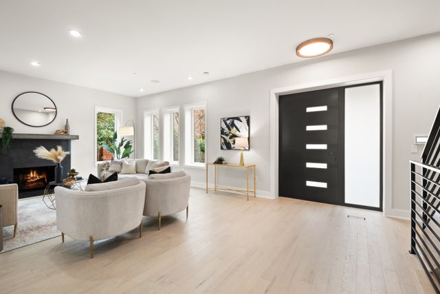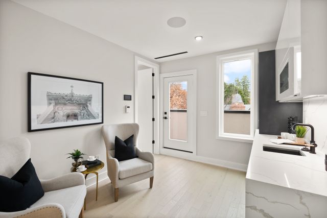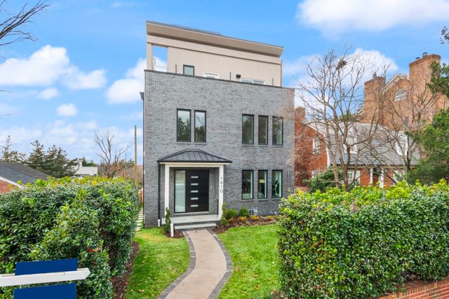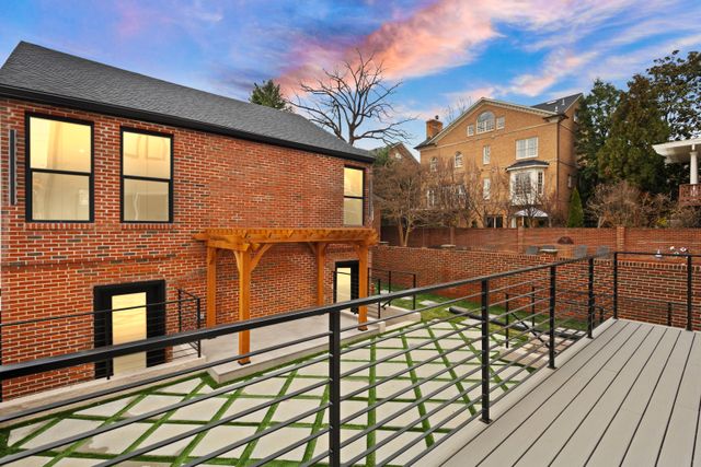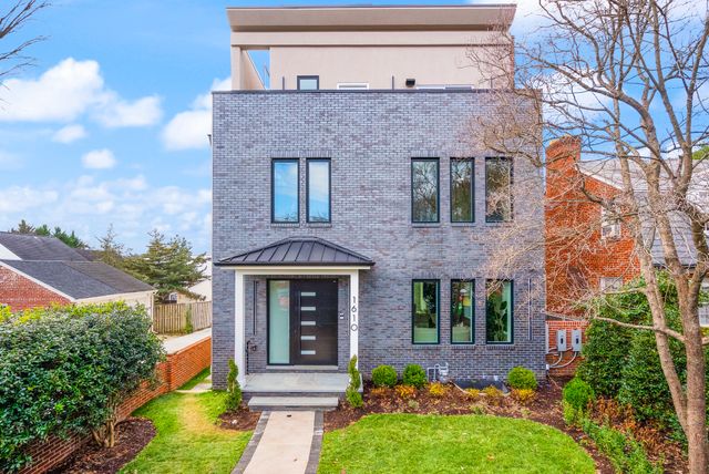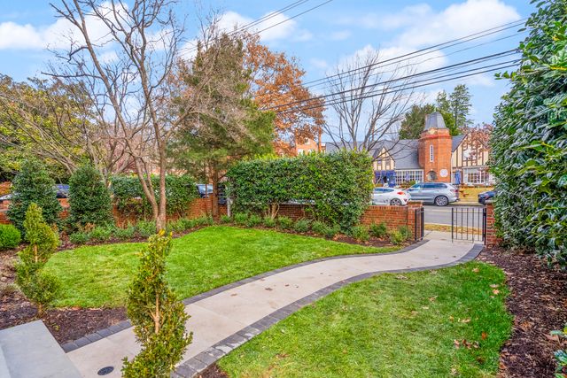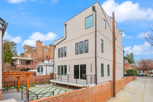 1610 Foxhall Road NW is situated in a desirable neighborhood in Northwest Washington D.C., offering a blend of urban convenience and residential serenity. While specific details about the immediate neighborhood are not provided in the document, its location in Northwest D.C. suggests proximity to various amenities and attractions common to this area, such as parks, restaurants, shops, and great hiking trails. The mature trees on the property indicate a neighborhood with established growth and a likely leafy, residential feel. Further research into the Foxhall Road area would yield more detailed information about the specific neighborhood amenities and character. This stunning 7-bedroom, 6-full-bathroom, 2-half-bathroom residence at 1610 Foxhall Road NW offers unparalleled luxury and modern convenience. The home features an elevator servicing all levels, imported porcelain tiles, and an advanced audio system throughout. Safety and security are paramount, and a fire sprinkler system and intercom system are ensured, adding peace of mind. The main level welcomes you with 4 1/4" red oak flooring, ample natural light, a custom-made European aluminum front door, and a captivating wood-burning fireplace. The gourmet kitchen is equipped with high-end Leich German cabinets, stone countertops, and Thermador appliances. A wet bar, built-in coffee maker, and beverage cooler add to the sophisticated ambiance. The primary suite boasts a luxurious bathroom with a walk-in shower and a soaking tub; a half bath is conveniently located near the wet bar. Private balconies and a rooftop deck provide stunning views and outdoor living spaces. The second level includes three additional bedrooms and two full bathrooms, offering ample space for a growing family or guests, while the lower level offers a comfortable bedroom and full bath, a den or gym, a wet bar, and laundry facilities. A separate ADU unit with two bedrooms and two full baths offers additional living space and flexibility. Exterior features include a two-car garage and mature landscaping that enhances privacy and aesthetics. A rear deck, patio with pergola, and vegetable garden complete this exceptional property.